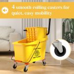 mop wringer bucket, commercial mop bucket, wheeled mop bucket, floor cleaning bucket, janitorial supplies, large mop bucket, down press wringer, industrial mop, yellow mop bucket, heavy duty bucket.
